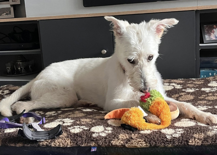 Daisy has a playful spirit and loves her toys, fun and games - like tug or fetch with her tennis balls - Daisy needs a garden of her own to enjoy stretching her legs in - she has no re-call training and needs to be kept on lead on her walks out of the home.