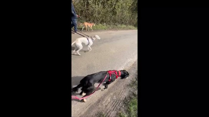 1st dog meet: The 1st dog meet is on lead so the dogs can spend time together in a controlled manner.