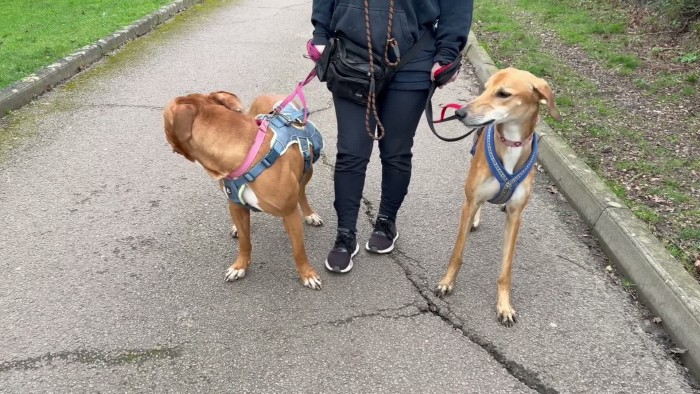 1st dog meet: The 1st dog meet is on lead so the dogs can spend time together in a controlled manner.