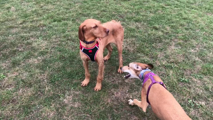 1st dog meet: The 1st dog meet is on lead so the dogs can spend time together in a controlled manner.