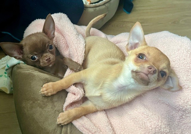 "Just wanted to drop you a message to say hello and let you know that our little Chihuahua pups are doing amazingly well!! Thankyou for everything back in December, including all the updates, contact and professional service you provided. Bailey and Henry are now six months old and are really gaining weight, more so than size haha!! They are so playful, their personalities clearly coming out now too. I have attached a few photos for you and would be grateful if you could let Katie and Helen know they are settling in very well. Thankyou again"