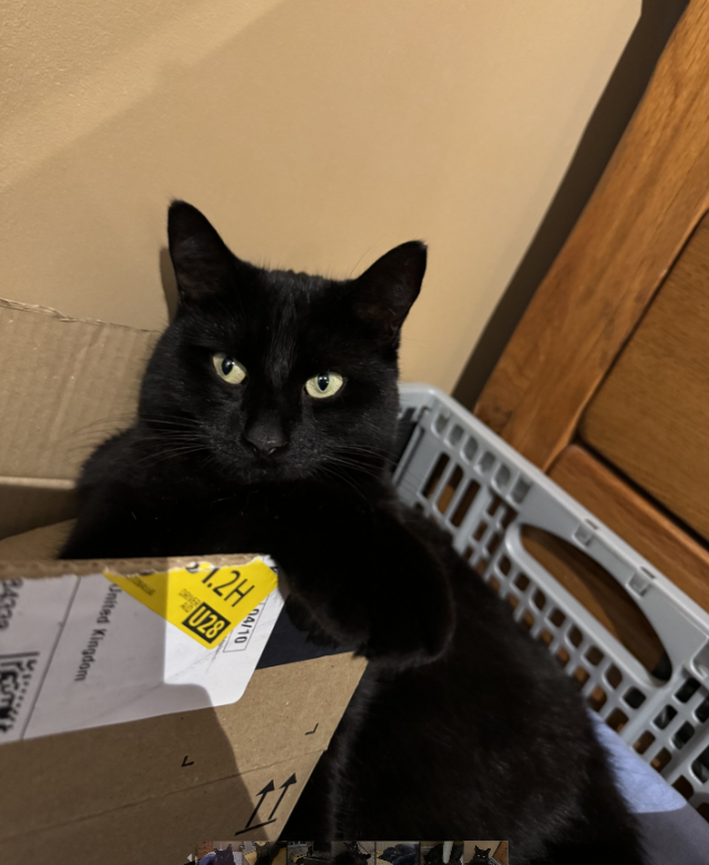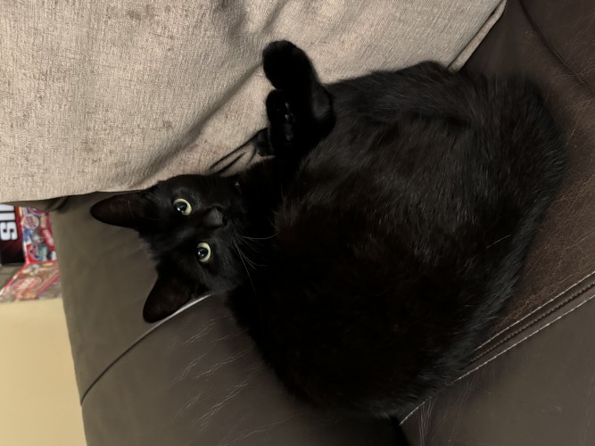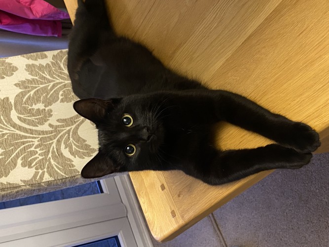 When she’s home alone she cry’s a lot and in the summer spends most of her time out playing in the garden. A cunning little hunter at heart always bring us presents home but we love her to bits and are so glad we changed our mind of not wanting a black cat.